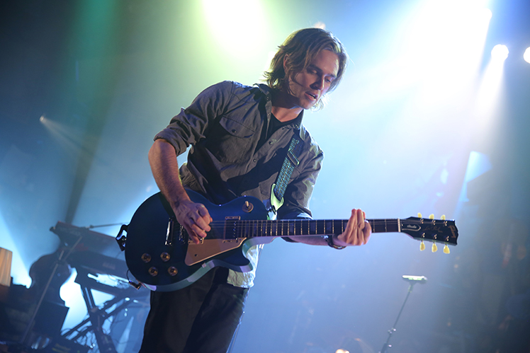 I’m also in love with not just the sound of the show but the design. The stage picture is beautiful. The entire theatre has been transformed, covered wall to wall in carpets, and lamps scattered across the stage. I know, carpets don’t sound super fancy, but I walked in and caught my breath at the beauty of the space. There’s also a mini-tower of instruments upstage center, à la this guy at the Seattle Rock ‘n’ Roll Museum, that the performers climb on, occasionally grabbing a new guitar to play. The lighting design is stunning. The choreography is simple and not overdone. Oh, and there is also some awesome limited onstage seating on super comfy couches. It was like chilling in someone’s living room. But that someone is super, super cool. And they have a band.