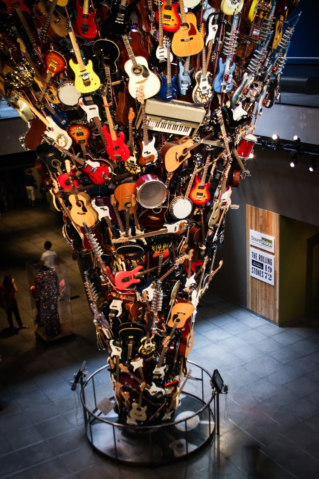 I’m also in love with not just the sound of the show but the design. The stage picture is beautiful. The entire theatre has been transformed, covered wall to wall in carpets, and lamps scattered across the stage. I know, carpets don’t sound super fancy, but I walked in and caught my breath at the beauty of the space. There’s also a mini-tower of instruments upstage center, à la this guy at the Seattle Rock ‘n’ Roll Museum, that the performers climb on, occasionally grabbing a new guitar to play. The lighting design is stunning. The choreography is simple and not overdone. Oh, and there is also some awesome limited onstage seating on super comfy couches. It was like chilling in someone’s living room. But that someone is super, super cool. And they have a band.